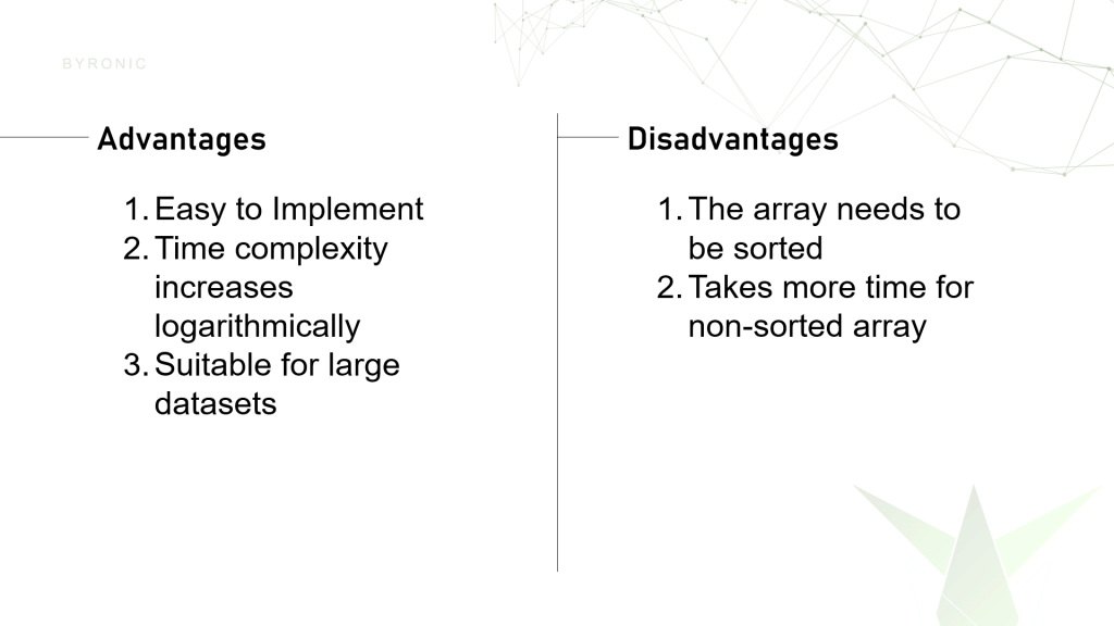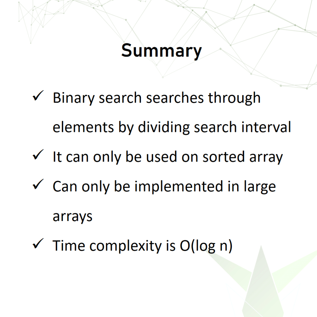 Now you might be wondering why Binary Search is called ” Binary Search “. There is no 0 and 1 so why ? It is called Binary search because when you divide the dictionary into two you get yourself the left part or right part or should i say 0 and 1. Since you always get 2 parts while dividing and choose one of the part based on your comparison that’s why it is called Binary search.