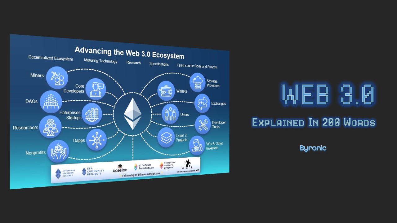 Web3 or Web 3.0 is an idea about putting the whole “World Wide Web” into “Blockchain”. Web3 is a decentralized and secure concept where people have their own ownership of their presence on the internet.Web3.0 started getting recognised after the bitcoin started popularizing. Web 1.0 was the first web launched by Tim Berners Lee ,Continue reading “Web3 – Explained In 200 Words”
